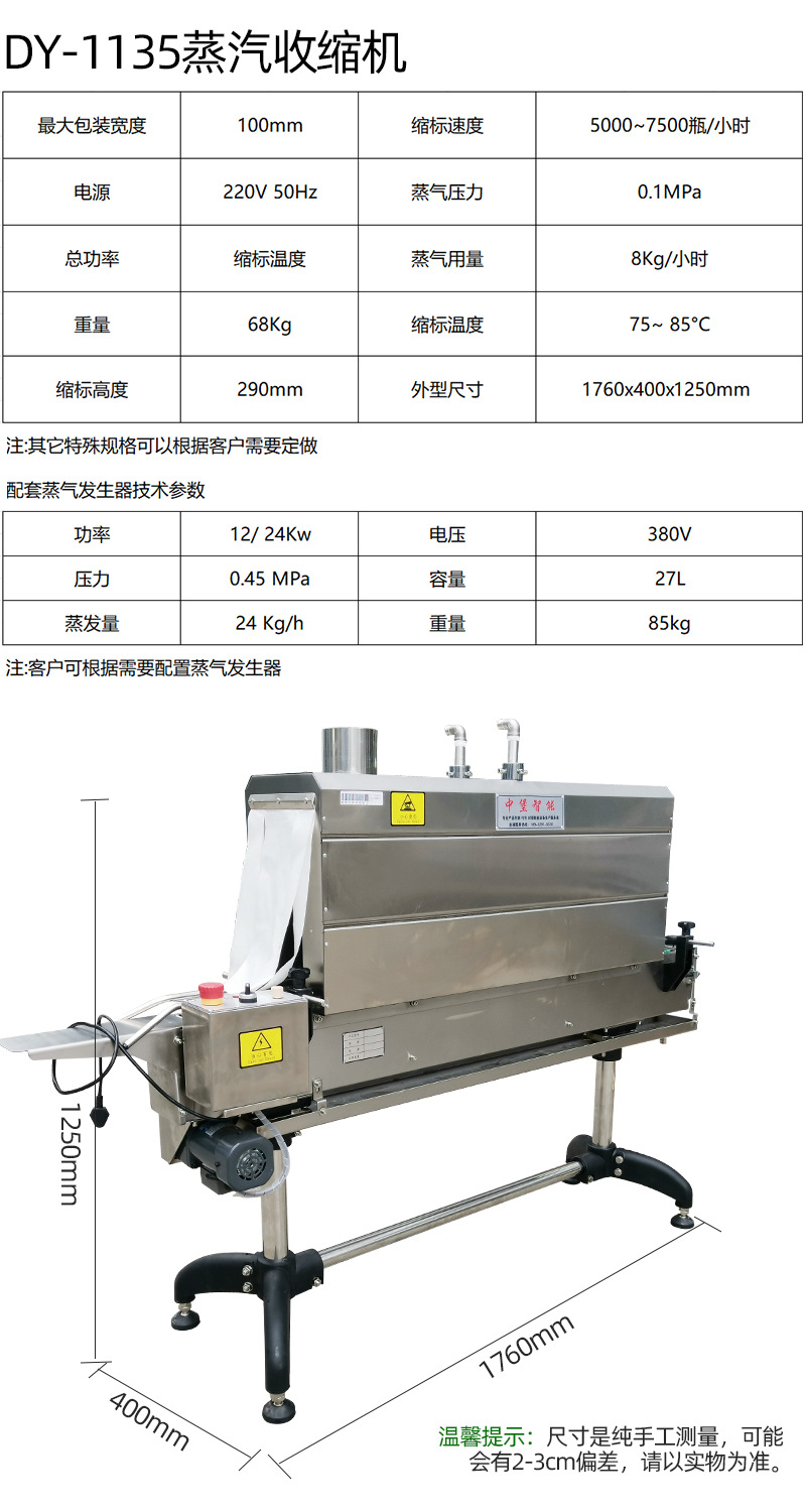 • 環保性能較好:相對于一些使用化學溶劑的包裝方式,蒸汽收縮機主要利用蒸汽作為熱源,減少了對環境有害的化學物質的使用。