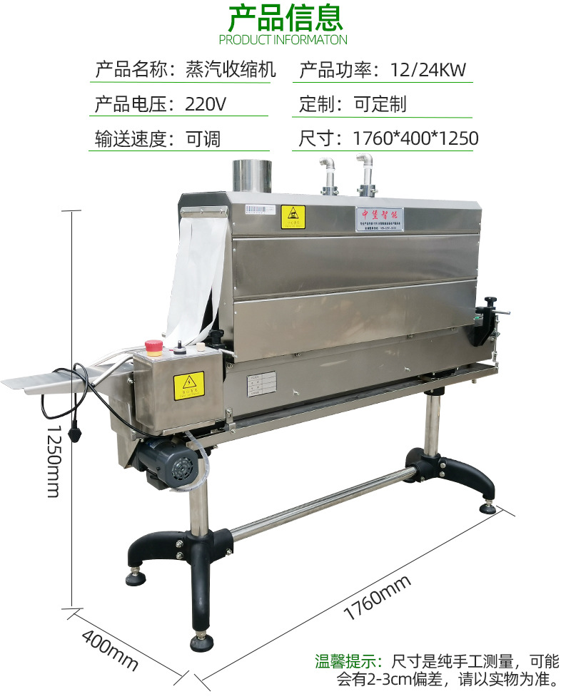 總之,蒸汽收縮機是一種高效、節能、環保的包裝設備,廣泛應用于各個行業。在使用過程中,應嚴格遵守操作規程,注意安全,選擇合適的包裝材料,定期對設備進行維護和保養,以確保設備的正常運行和產品的包裝質量。