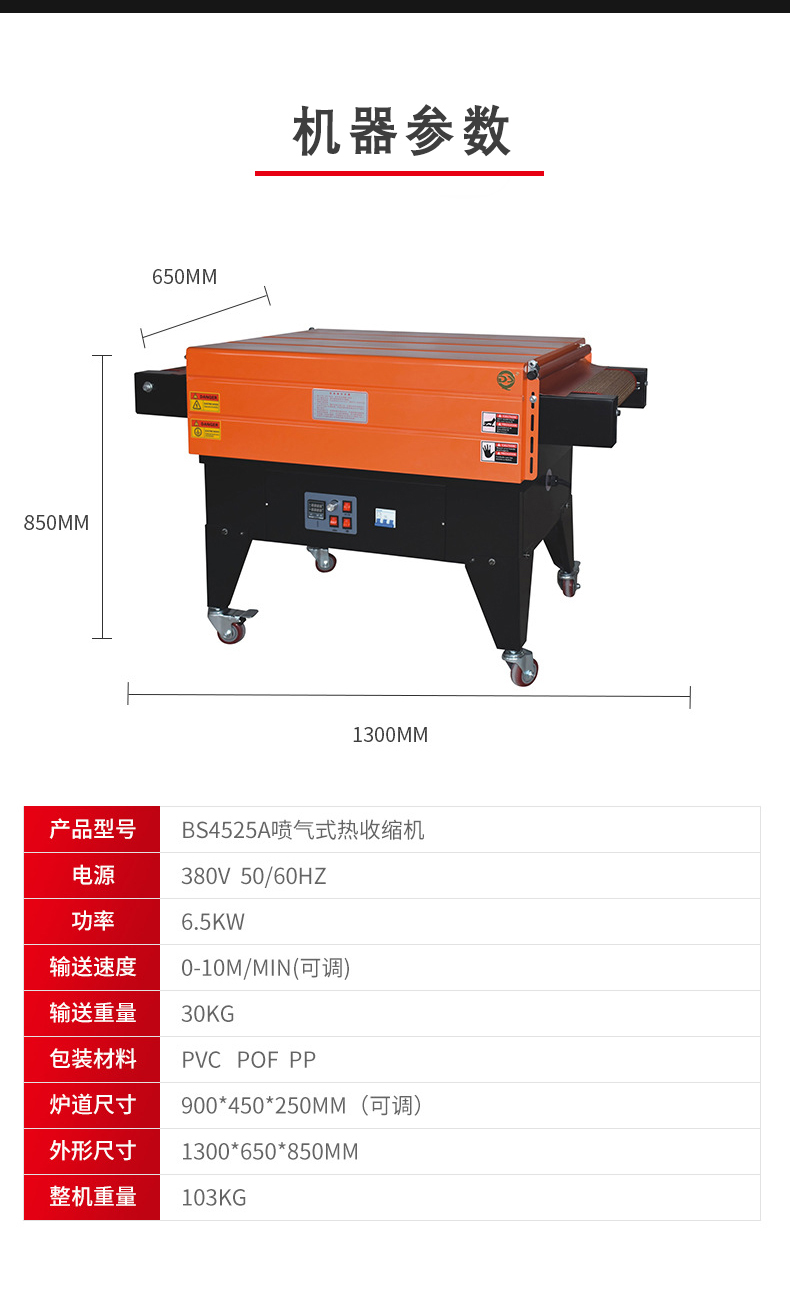 - 收縮均勻度高:噴氣式熱收縮機通過噴氣系統(tǒng)將熱空氣均勻地噴射到包裝薄膜上。熱空氣能夠全方位地包裹產(chǎn)品,使得薄膜在各個方向受熱均勻。例如,在包裝正方體形狀的產(chǎn)品時,熱空氣會從產(chǎn)品的六個面同時作用,讓薄膜在各個面都能以相近的速度收縮,避免出現(xiàn)局部收縮過度或收縮不足的情況,從而使包裝后的產(chǎn)品外觀更加平整、美觀。