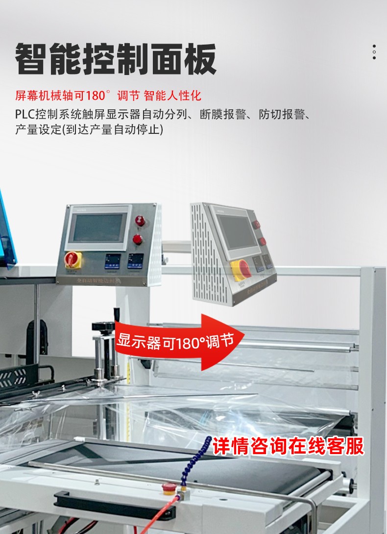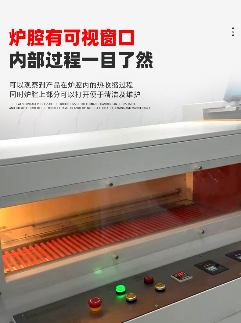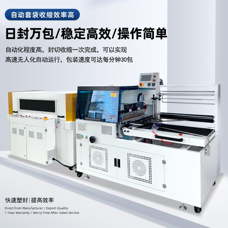 - 自動(dòng)化程度高:配備 PLC 控制系統(tǒng)和光電感應(yīng)裝置,可自動(dòng)完成送膜、封口、熱收縮、出料全流程,無(wú)需人工干預(yù)。