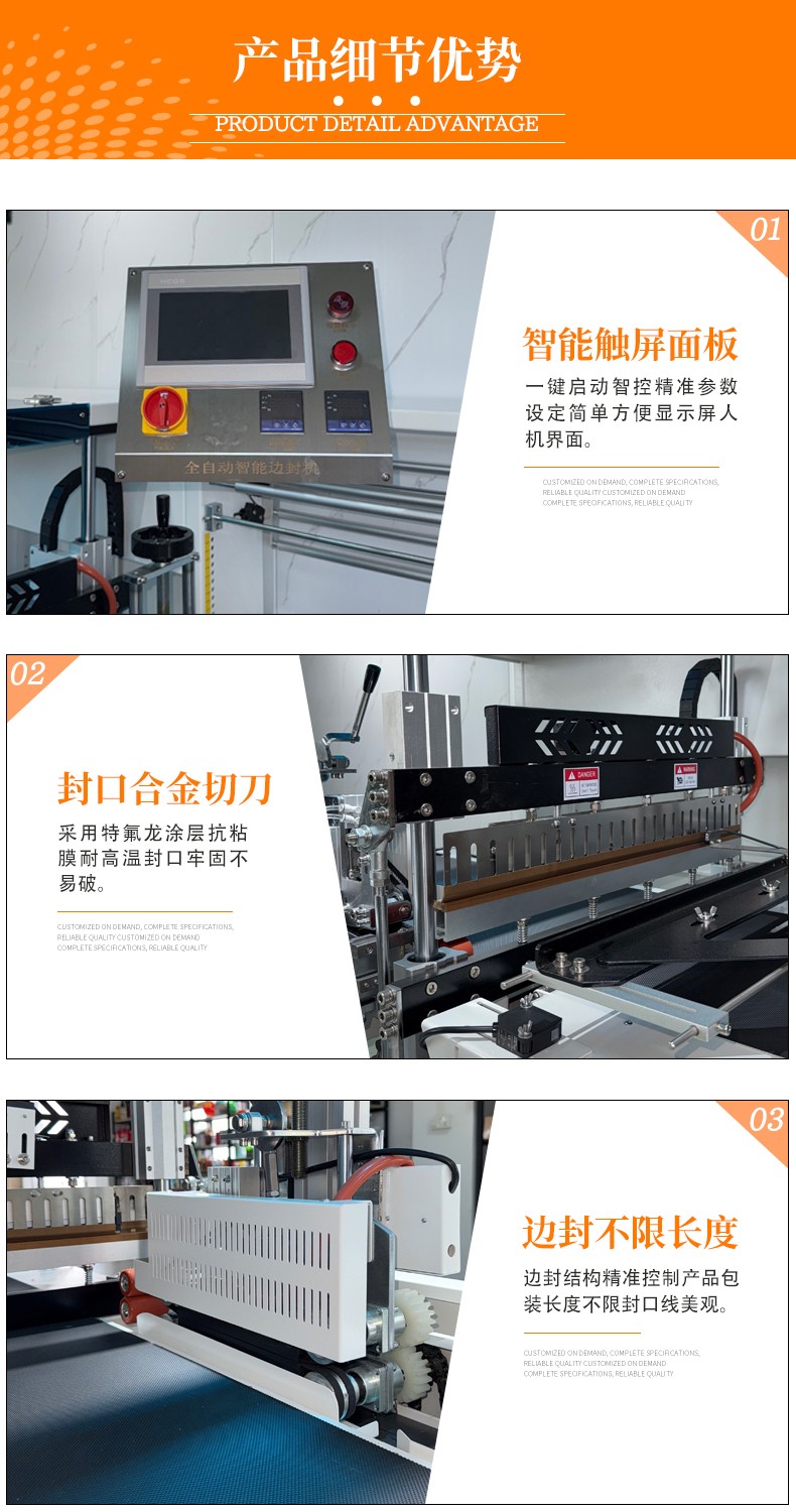 - 故障率低:關(guān)鍵部件(如恒溫封刀、輸送電機(jī))多為工業(yè)級(jí)配置,且設(shè)有過(guò)載保護(hù)、溫度異常報(bào)警等功能,降低故障導(dǎo)致的效率損耗。