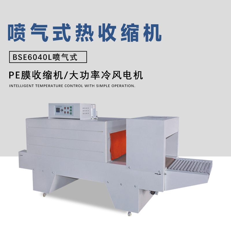 • 基本原理:噴氣式熱收縮機主要是利用熱空氣循環的原理來工作。它通過加熱裝置將空氣加熱到一定溫度,然后利用風機將熱空氣高速噴射到包裝好的產品表面。包裝材料(通常是熱收縮薄膜)在熱空氣的作用下受熱收縮,緊密地貼合在產品表面,從而達到包裝美觀、防潮、防污等效果。