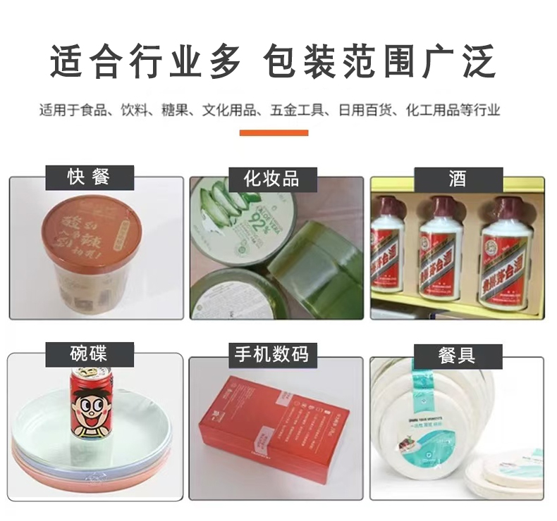 - 在食品、飲料、醫(yī)藥、日化、電子、五金等眾多行業(yè)都有應(yīng)用。在食品行業(yè),用于包裝面包、餅干、肉類等產(chǎn)品;在飲料行業(yè),對瓶裝飲料、罐裝飲料進(jìn)行包裝;在醫(yī)藥行業(yè),包裝藥品、醫(yī)療器械等;在日化行業(yè),對洗發(fā)水、沐浴露等產(chǎn)品進(jìn)行包裝;在電子行業(yè),包裝手機(jī)配件、電腦周邊產(chǎn)品等;在五金行業(yè),包裝工具、小五金零件等。