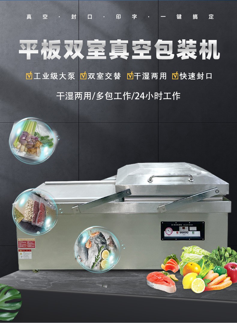 平板雙室真空機(jī)是一種常見的真空包裝設(shè)備,以下是其相關(guān)介紹:
