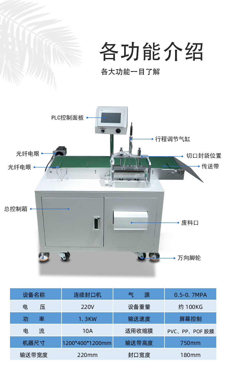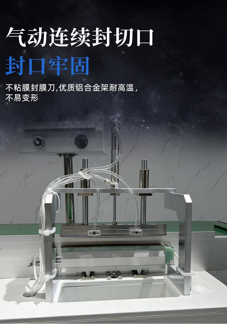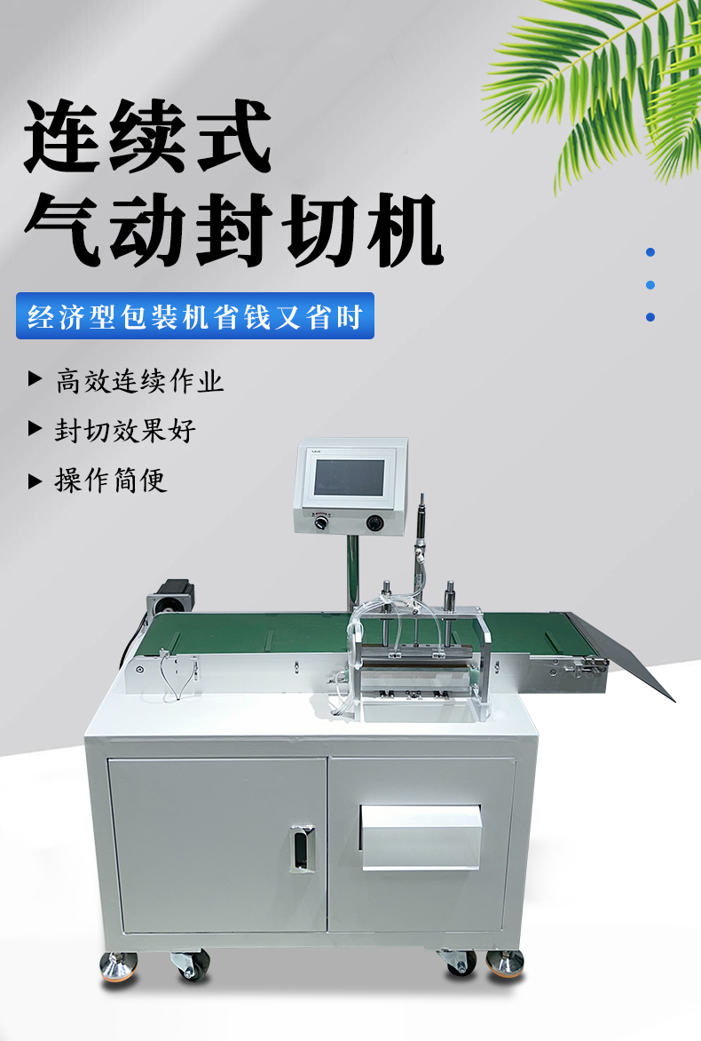 - 高速連續作業:采用氣動驅動和連續輸送的方式,能夠實現快速的封切操作,并且可以連續不斷地對物品進行包裝,生產效率高,適用于大批量產品的包裝生產線。
