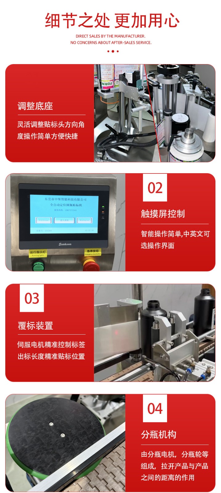 - 分瓶:分瓶機構對圓瓶進行等距分隔,使每個圓瓶以一定的間隔進入貼標和打碼區域,確保每個瓶子都能得到準確的處理。
