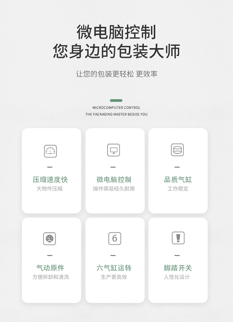 雙工位壓縮封口機:兩個工位可同時作業,一邊封口時另一個可放件 / 取件,適合中小批量、多規格產品(如多口味食品、電子元件袋),效率比單工位高 50%-80%。