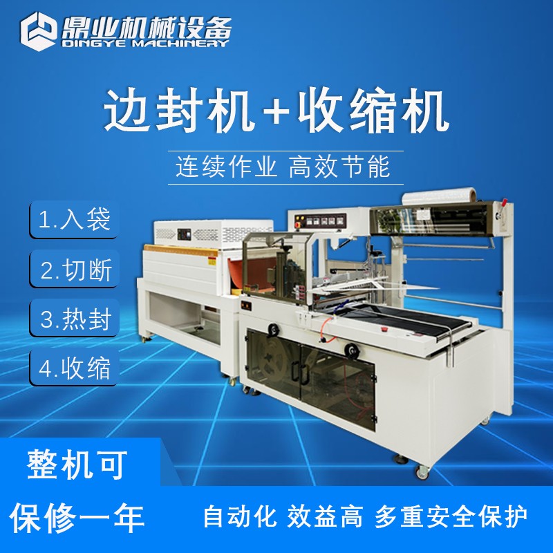 全自動邊封餐具熱收縮膜封切包裝機熱封機快遞鞋紙盒塑封套膜機