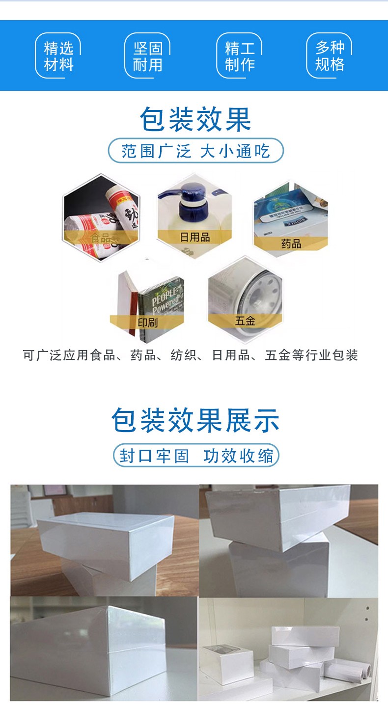 • 材質和厚度:不同材質的薄膜(如 PVC、POF、PE 等)有不同的熱封和熱收縮特性。在選型時,要確保設備的邊封溫度、熱收縮溫度和速度等參數能夠與所使用的薄膜相匹配。例如,POF 薄膜透明度高、韌性好,但熱收縮溫度相對較低,需要設備能夠精確控制在合適的溫度范圍內進行熱收縮。薄膜的厚度也會影響包裝效果,較厚的薄膜可能需要更高的邊封溫度和壓力,因此要選擇能夠滿足不同厚度薄膜包裝要求的設備。