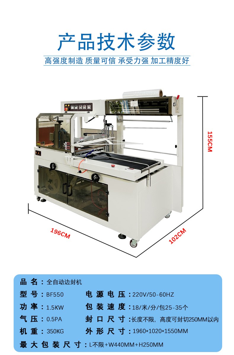 • 重量和材質:較重的產品需要設備的輸送帶和相關傳動部件有足夠的承載能力。同時,產品的材質也會影響包裝方式和參數設置。例如,對于易碎產品,在邊封和熱收縮過程中要注意控制壓力和溫度,避免產品損壞;對于金屬產品,可能需要更高的邊封溫度來確保薄膜與產品的密封性。